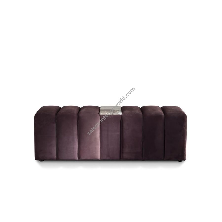 Particular padded bench, with wooden structure covered in double density polyurethane foam. A marble top, available in the following finishes from the catalogue, is placed in the centre. Leather and fabric upholstery are NOT removable.