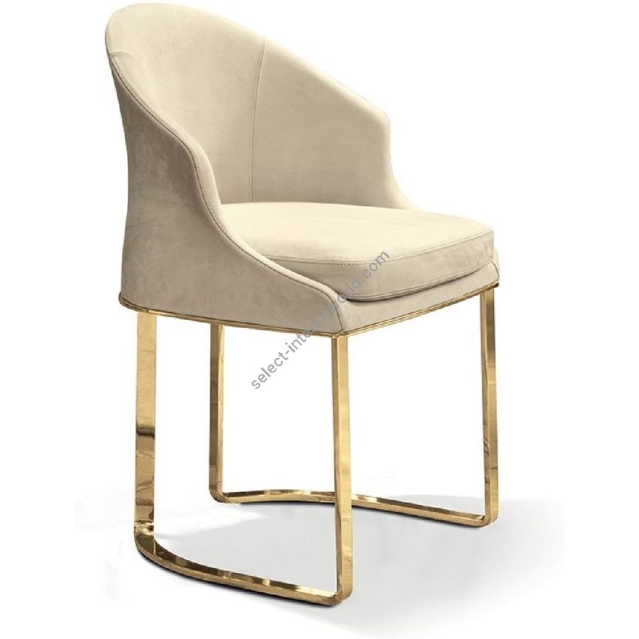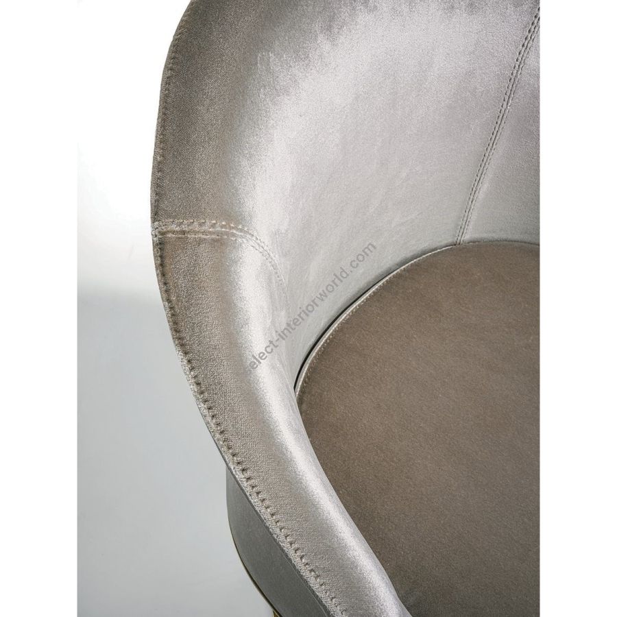 Metal frame moulded with high-density foam. Non-swivel metal base in the following finishes: Satinnickel, bright shaded brown, bright light gold, matt Champagne gold, bright chrome, bright black chrome, matt satin bronze, bright pink gold, matt pink gold, Black Rose gold. Given the special manufacturing process, velvet or leather upholstery is not removable.