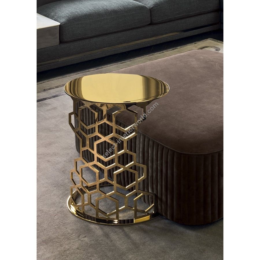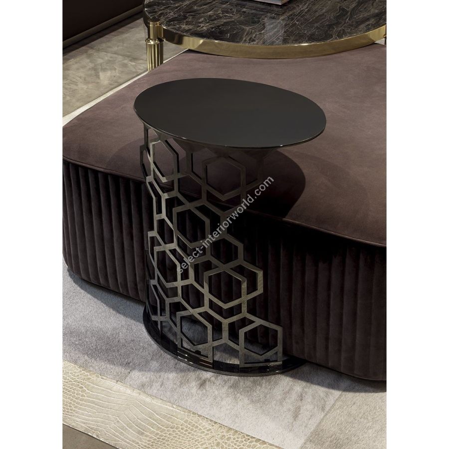 Versatile service table, indispensable for holding objects. An oval shaped top that creates an original asymmetrical effect in relation to the structure with “Sequence” decoration. The small table is particularly suited for use with different types of seating from the Loveluxe collection, mainly over the sofa seats.