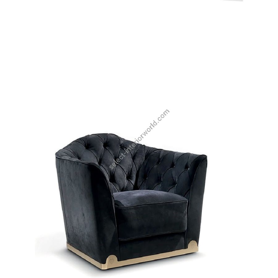 A collection of sofas that has an unequalled backrest with a “wavy” Capitonné tufted upholstery. This takes the form of a fan at the height of the slightly widened armrests. In sober classic taste, Grace also includes a small armchair to set beside the sofa. The base padding is rather firm, but can be softened by a series of goose down-filled cushions that make the sofa more comfortable. The profiles are enhanced by leather edging and the base, in metal, is a hallmark of Loveluxe: an unmistakable sign of a handcrafted product 100% Made in Italy.