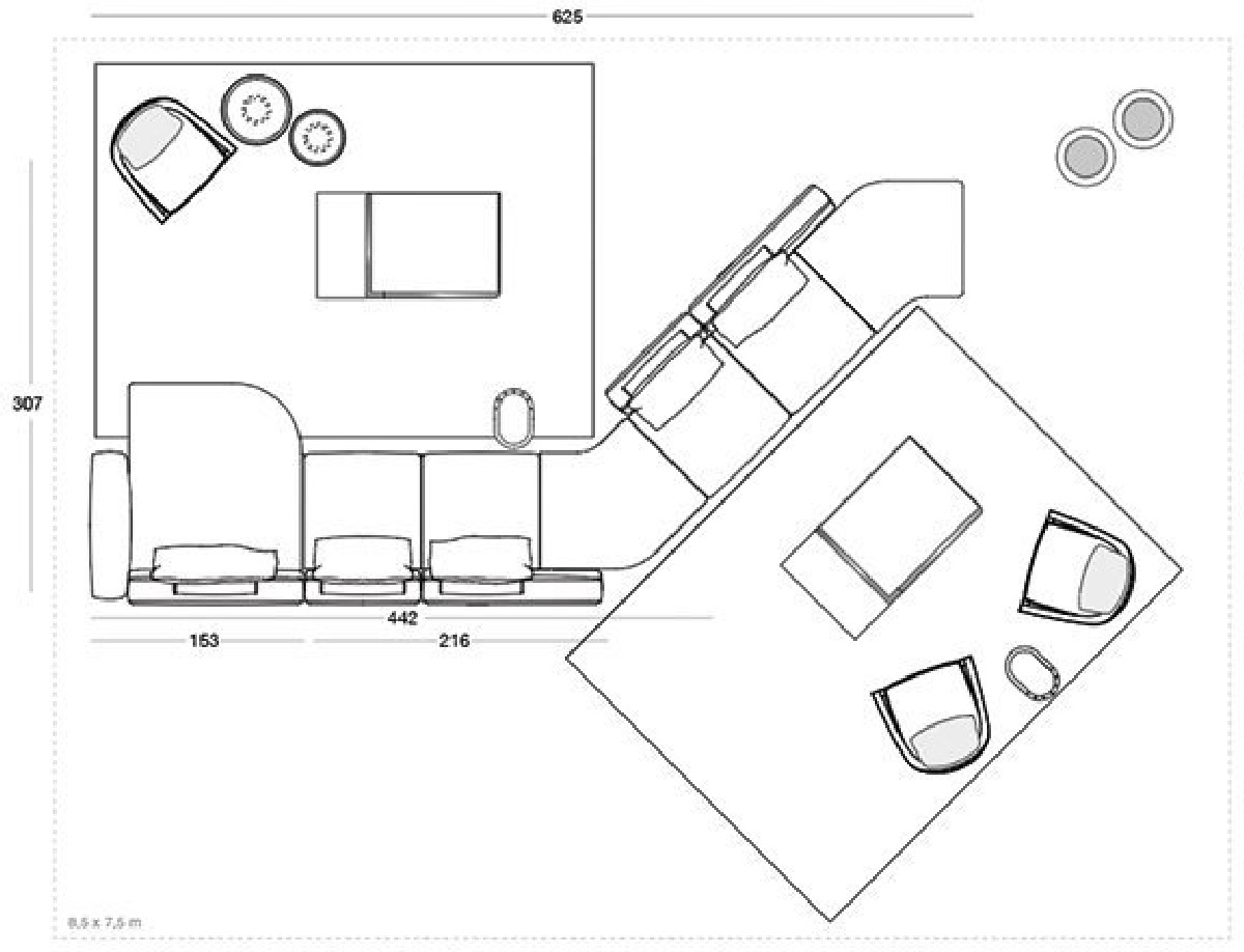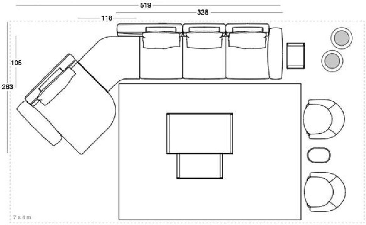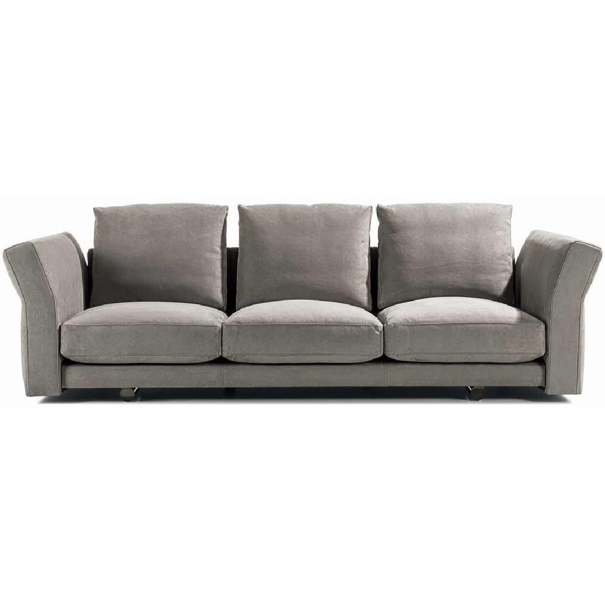 Riverside sofa, designed by Giuseppe Iasparra, features low and not excessively deep proportions and a deconstructed shape for a more relaxed, informal look, thanks to the use of large feathers cushions. Special accessories and small tables enrich the sofa with unexpected features. Riverside fits to perfection in a wide variety of contexts due to the elegance and simplicity of its lines. A metal insert embracing the armrest grants the piece a sense of sober elegance. With its high potential for aggregation, versatility and innovative design, the sofa introduces original and unexpected structural details, resulting in a dynamic and contemporary allure. The Riverside version with extended back makes it possible to insert small tables, for a variety of compositions.