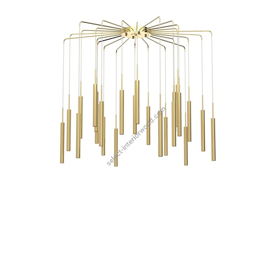 Inspired by a contemporary and refined design, this chandelier, ideal for living rooms and living areas, is composed of a central structure of 24 brass arms in the refined light gold finish, it is a clear example of aesthetic and practical functionality.