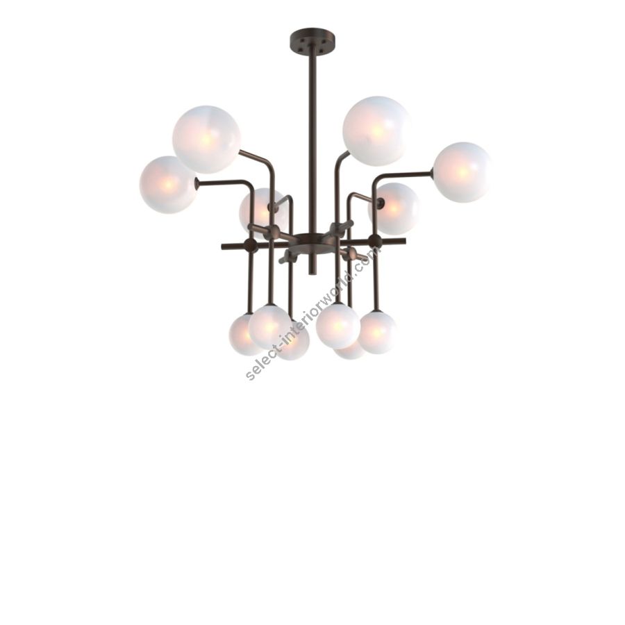 Composed of a brass structure in bronze finish and 12 glass diffuser spheres, this product will be able to make unique and highlight any type of hotel, restaurant or residence environment.