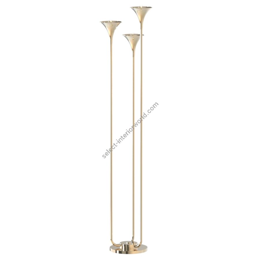 This contemporary style floor model features three light points and a structure entirely in brass with a light gold finish. Designed for bedrooms and common areas.