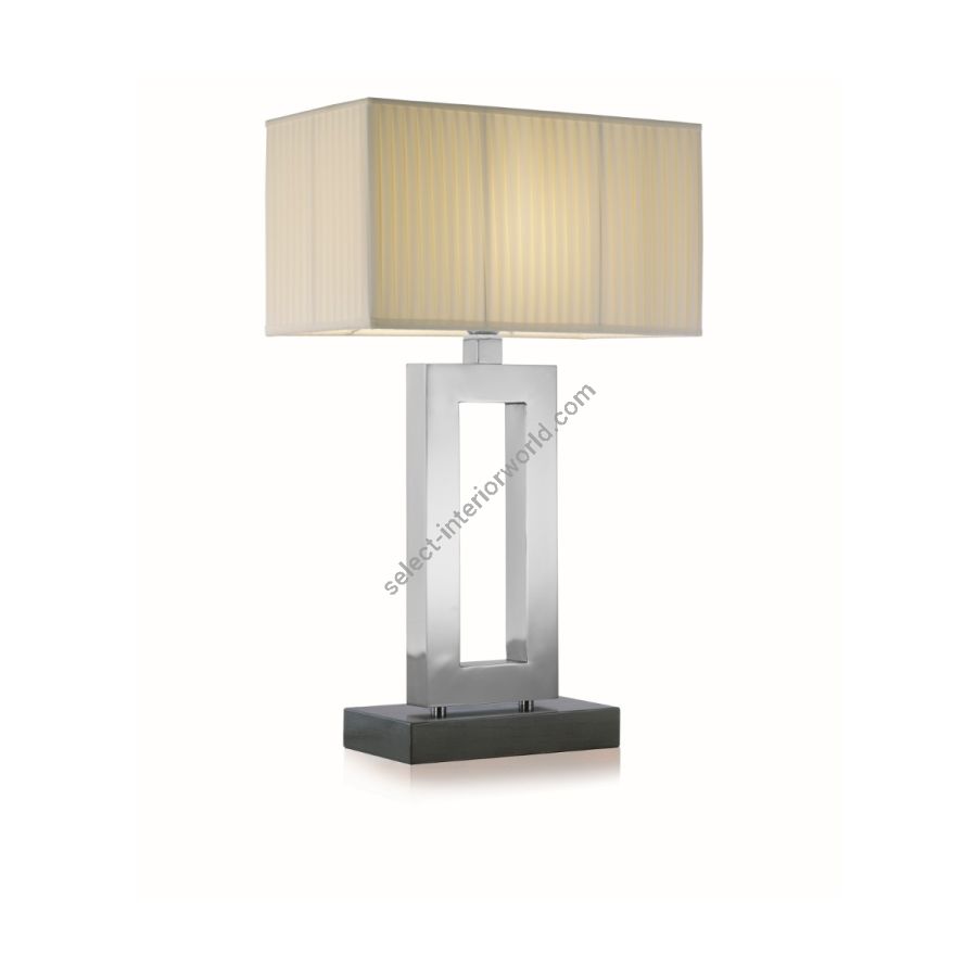 Formal elegance and defined angles describe this table lamp in chrome finish brass, with rectangular lampshade in ivory pleated fabric.