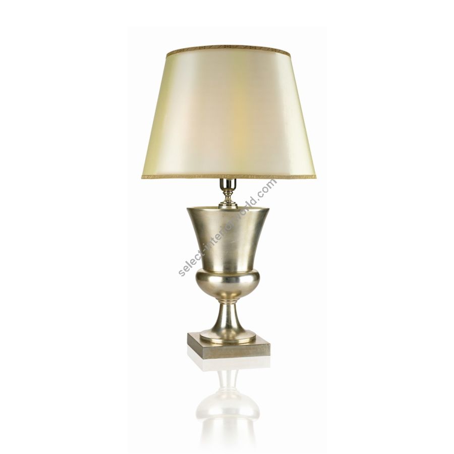 This luminous desk body of classic design, with wooden structure decorated with antiqued silver leaf, completed with a conical lampshade in ivory fabric, is perfect for lighting a bedroom, a dining room or a living room. Available in various colors.