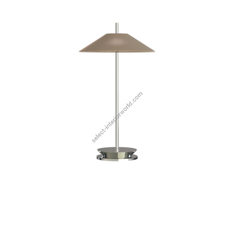 Daughter of a classic design and suitable for bedrooms and common areas, the table model, suitable for bedside tables and desks, is composed of a structure and a round base for fixing to the wall in metal, polished nickel finish. Available in various colors and finishes.