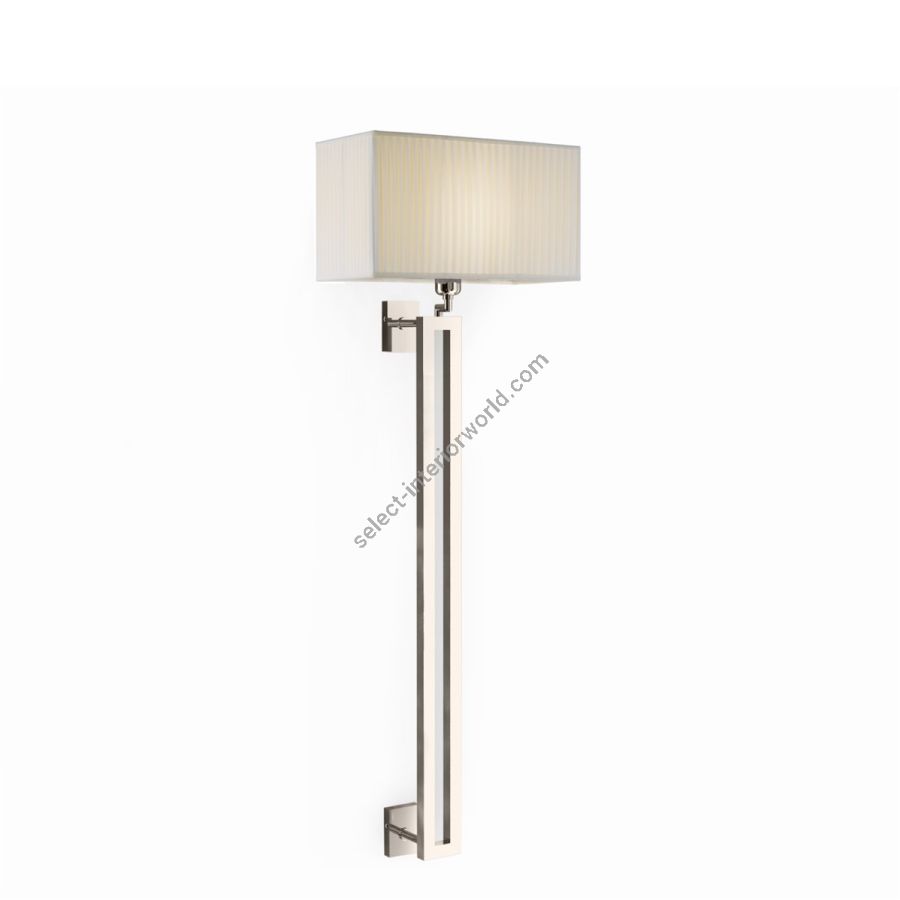 A design consisting of a high vertical brass structure in chrome finish and a rectangular lampshade in ivory pleated fabric, transform this lamp model into a perfect example of class and contemporaneity, ideal in living rooms, dining rooms and common areas. Also available in nickel and light gold finish.
