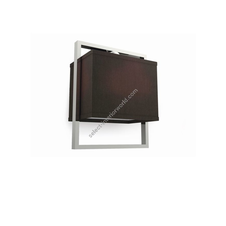 Elegance and refinement perfectly describe Fairfax lamps. A rectangular lampshade in dark brown fabric enclosed in a right-angled structure in chrome-finish brass.