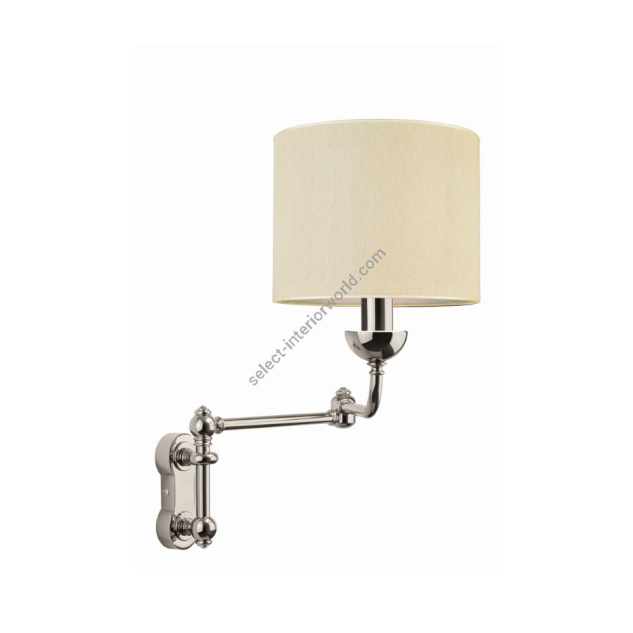 Sharp lines and an articulated structure describe this wall lamp in polished nickel finish brass, capable of adapting to any environment. Cylindrical lampshade in ivory fabric. Available in various finishes.