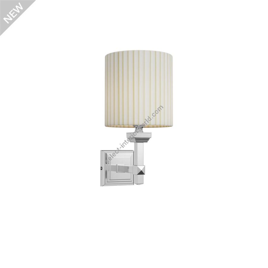 Equipped with a square base, the wall lamp model in brass with a polished chrome finish, has a cylindrical lampshade in ivory pleated fabric. Ideal for lighting bedrooms and living areas.