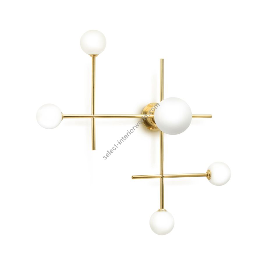 Composed of 4 brass stems in light gold finish and 4 glass diffuser spheres, this elegant applique will be able to make any type of environment unique and stand out.