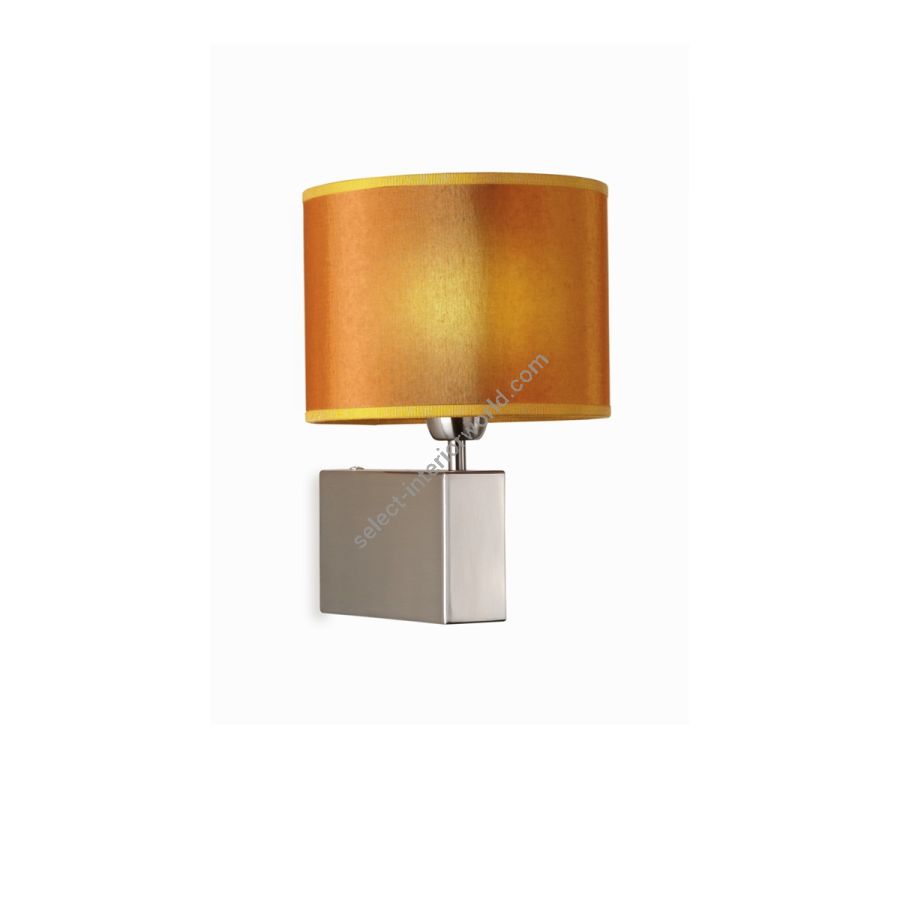 Refined and captivating, this modern style Promoteo wall lamp is made up of a rectangular bust in brushed nickel finish metal and a cylindrical lampshade in yellow fabric.