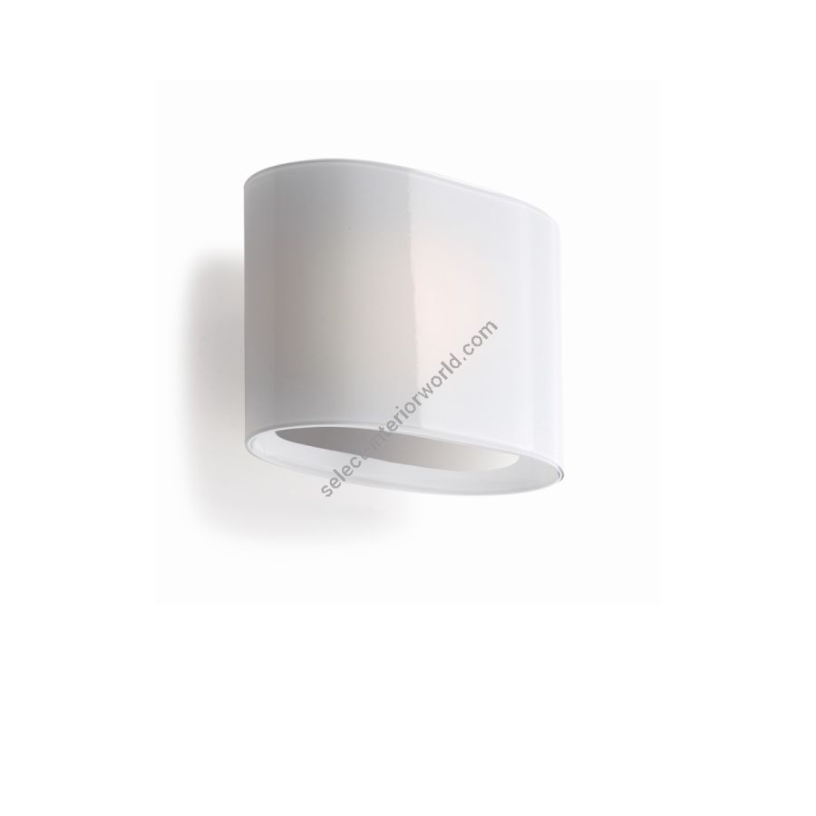 Glass wall lamp with a refined and extremely versatile style. The compact and defined shape make it a perfect model to be used in bedrooms, corridors and common areas.