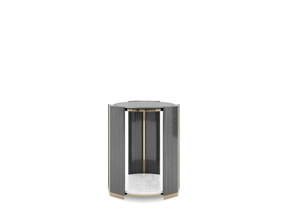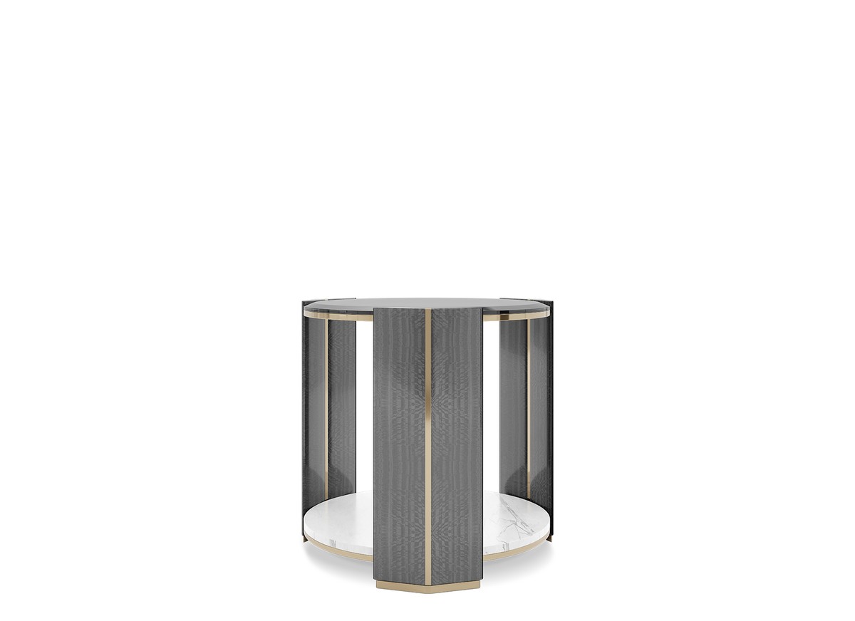 The Apotheosis Side Table exudes a hymn to sophistication and design, making a bold statement in any project. Its unique form showcases exceptional craftsmanship and exclusive design, resulting in a glorious construction. With a daring and elegant balance of polished brass, black lacquer, and marble, this modern side table adds a vigorous presence that revolutionizes the look of any space.