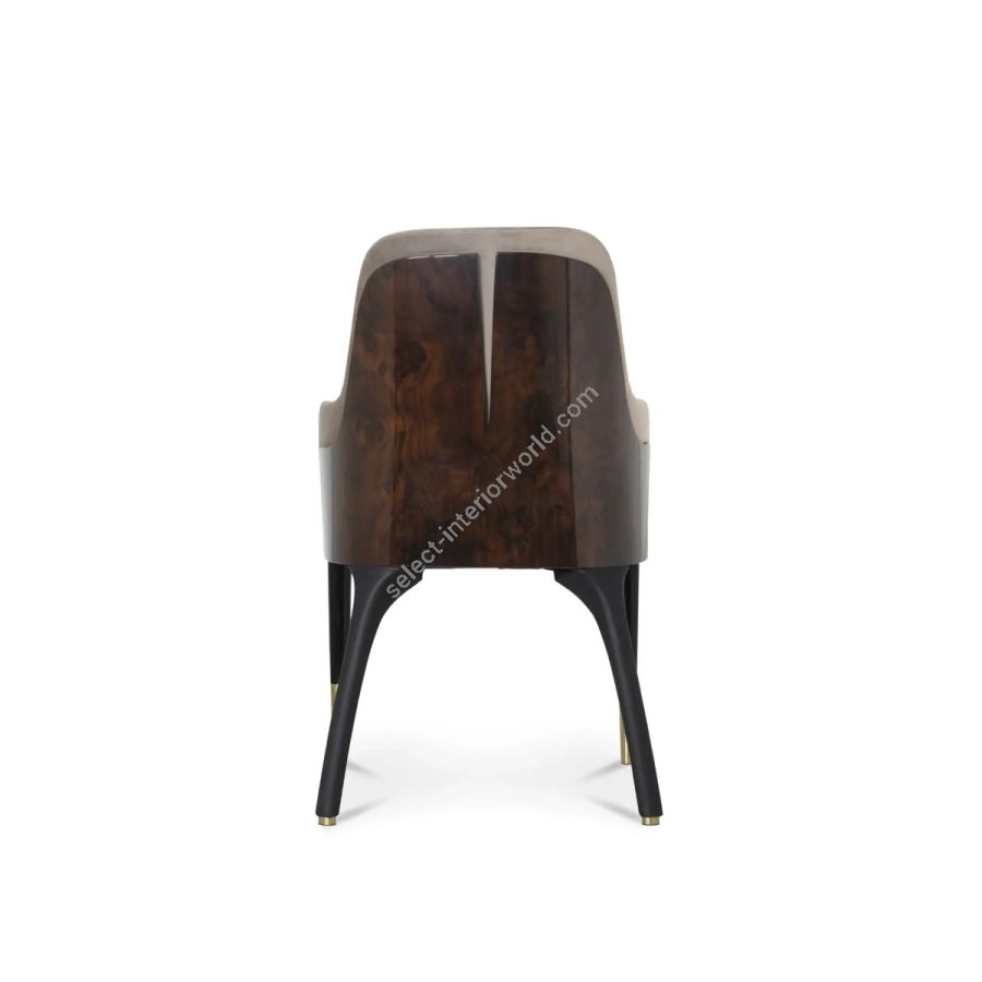 The Charla Dining Chair is a splendid and stylish chair with boundless elegance. This marvelous chair design is the perfect example of timeless lines with a modern twist by using a complexity of luxurious materials, such as velvet, brass, and lacquered wood.