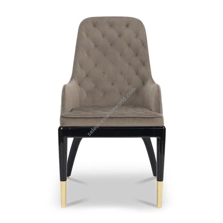 With an even more imperial shape, the Charla King Dining Chair portrays a powerful design with luxury finishes. Made of brass, leather, and velvet, this is the ideal chair for a lavish dining room. Blending luxury and comfort into one, it is a focal piece in the Charla collection.