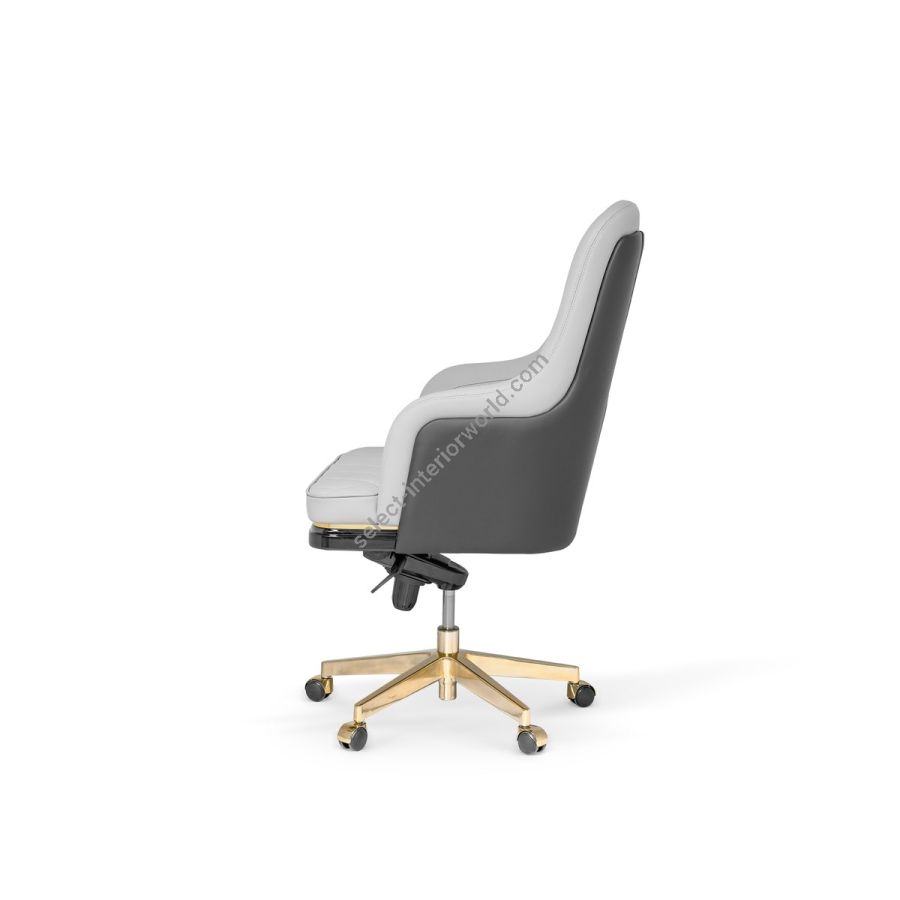 The Charla Office Chair is the perfect combination of luxury and comfort. Its ergonomic shape ensures the right posture for working comfortably for hours. This office chair is made of high-quality materials, including leather, polished brass, and black lacquer, ensuring durability and style. Its timeless design with a modern twist makes it an item of boundless elegance for any office style.