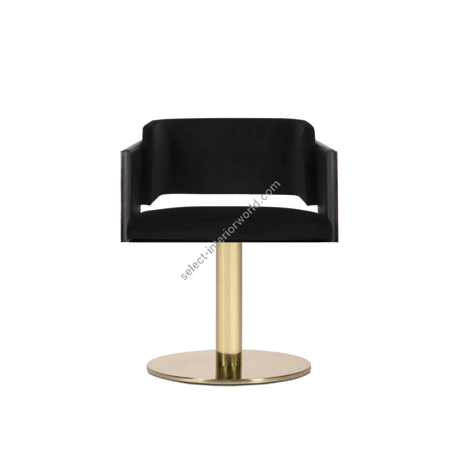 Galea is a glamorous dining chair that seamlessly combines ancient inspiration with modern design. Drawing from a helmet worn by warriors in the Roman Empire, this velvet and leather chair exudes elegance and sophistication. With its swivel feature, it offers elevated comfort and style, making it an ideal choice for upscale restaurants and contemporary dining rooms.