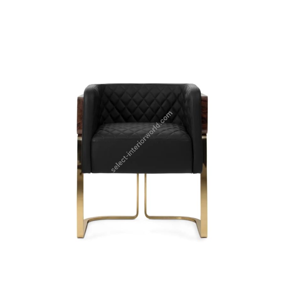 Featuring a uniquely shaped backrest, the Nura Dining Chair is the ultimate expression of cozy luxury. Shaped like a U, Nura is made of leather, brass, and wood and provides an embracing comfort only found in upholstery solutions with the same shape. Ideal for cozy yet glamorous dining rooms and restaurants.