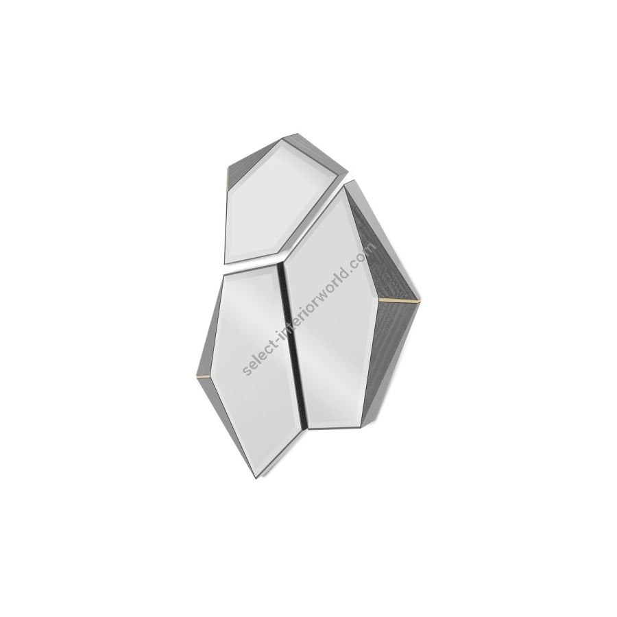 Divided into three asymmetrical frames, the fragmented form of the Algerone Mirror was designed to convey a more peculiar aesthetic that adds depth and interest to any space it bestows. Each frame is boarded with Eucalipto Frise veneer and brass details that further complement the mirror’s ornamental appeal.