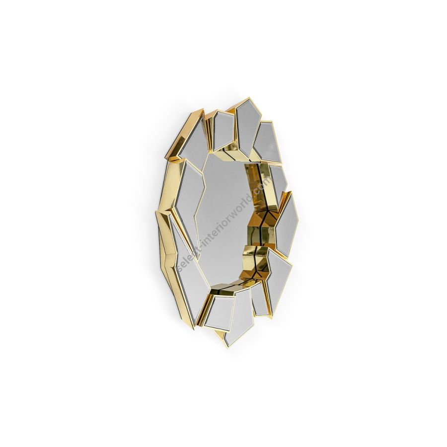 Made with the finest polished brass, the Crackle Round Mirror is designed to resemble a shattered mirror meticulously pieced back together, reminiscent of the ancient Japanese art of Kintsugi. This exquisite and luxurious mirror, featuring a gold frame, serves as the perfect statement piece to adorn any wall with its unique and captivating design.