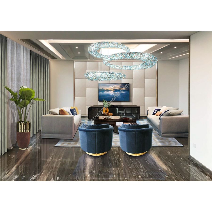Rio crystal chandelier embodies the beauty of refined asymmetry, merging irregular form with the perfect geometry of a circle. Inspired by the natural pull of gravity, Rio crystal light offers a bold twist on traditional symmetrical designs, making it an excellent choice for those seeking something unique and unconventional. Available in various sizes and crystal color combinations, Rio can be installed as a singular statement piece or in multi-size clusters. Whether illuminating a grand atrium, an elegant hallway, a cozy living room, or a stylish bedroom, Rio elevates any environment with its powerful presence and exquisite sparkle. In addition to our standard premium crystal selection, Rio is available with 100% Swarovski® crystals.