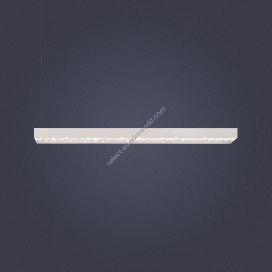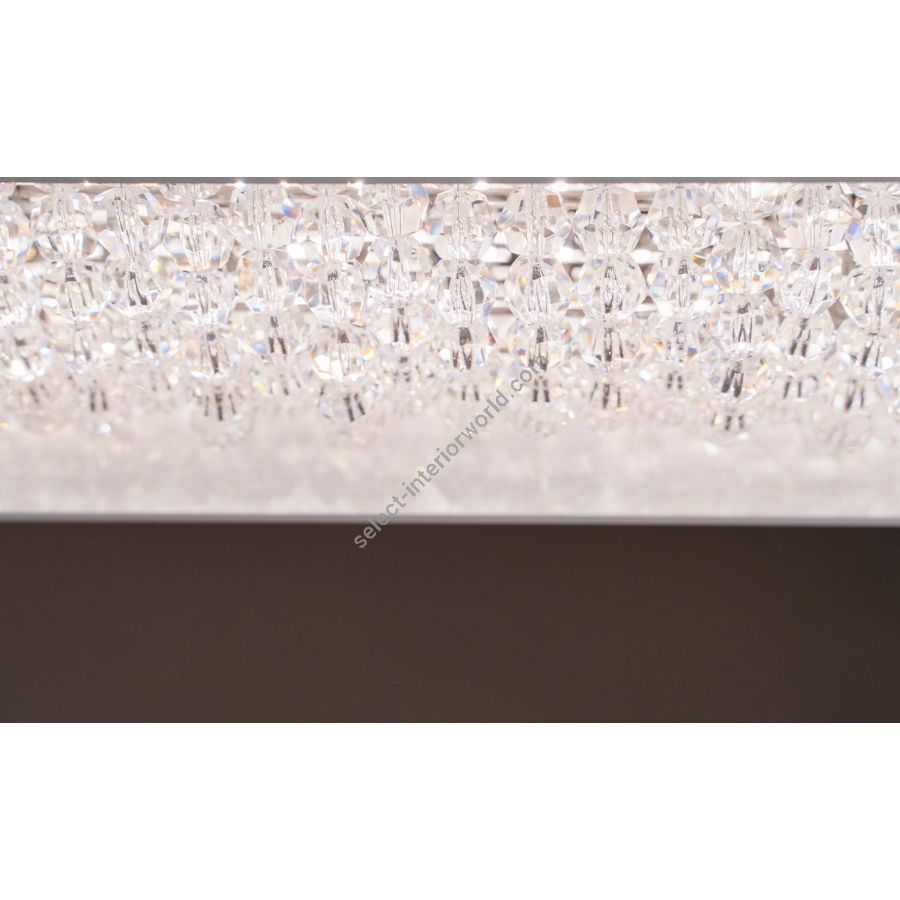 The Géode crystal chandelier features crystal beads encased in a modern geometric design. Crafted with the utmost attention to detail, this luminaire combines a sleek exterior with sparkling crystal elements inside. The unique geometric casing adds a contemporary touch, making it an ideal addition to modern interiors. The warm, inviting LED light seamlessly integrates with smart home systems, creating a cozy and luxurious ambience in your space.