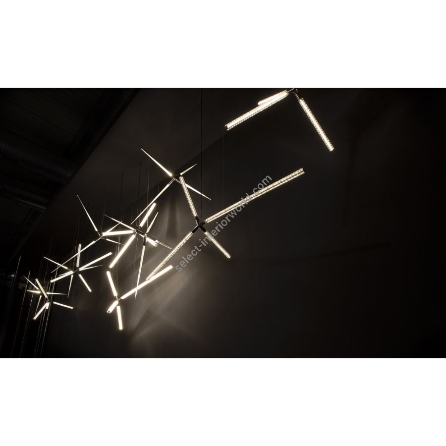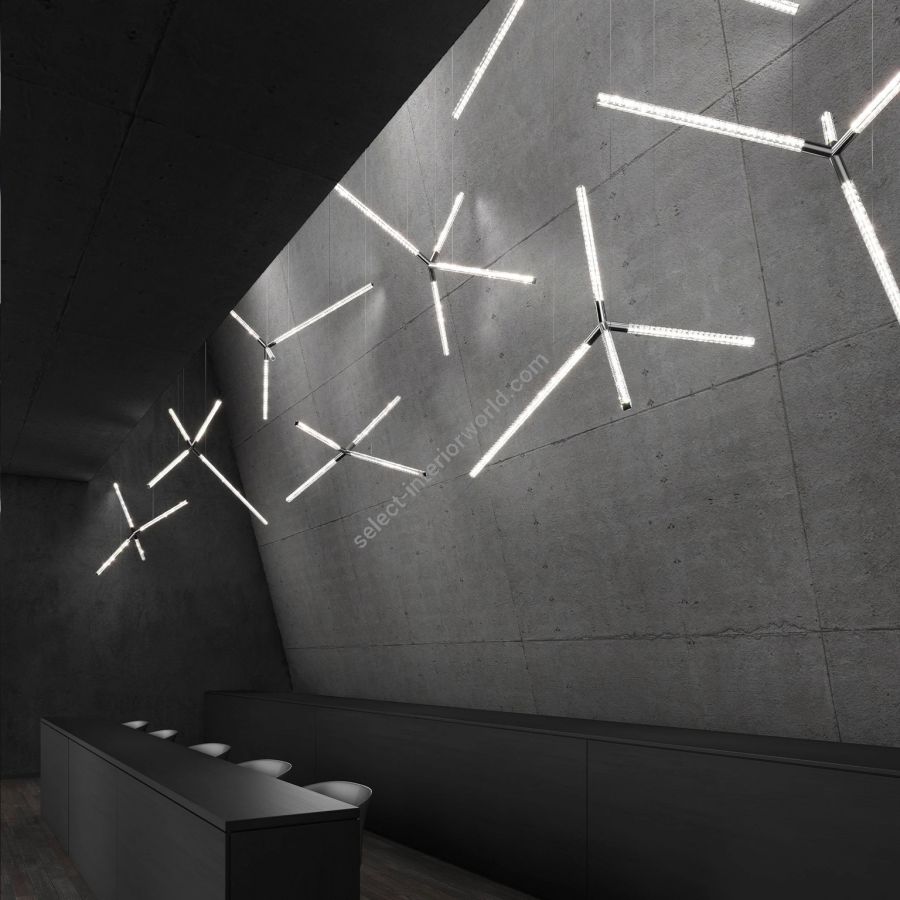 Hanabi spark from Manooi grasps the sensation and effect of the shimmering light of fireworks. Creating a splendid impression using the finest crystals and high-tech LED components, this contemporary designer lighting can be combined limitlessly in compositions filling enormous spaces with the elegant play of light. This chandelier looks stunning in various style and shape clusters, for a striking impact.