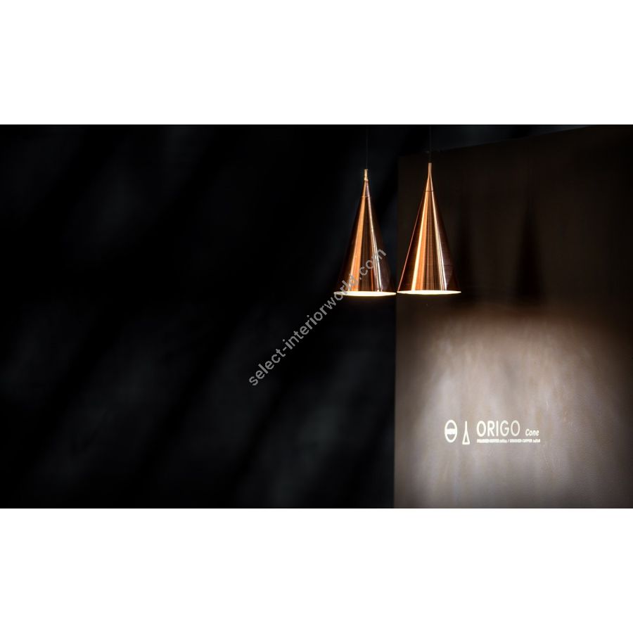 Origo Cone builds on the minimalist elegance of the original Origo pendant lamp, now reimagined in a smooth, refined cone shape. With its brushed copper lampshade and energy-efficient LED light source, Origo Cone crystal chandelierbrings warmth and glamour to any setting. Apart from copper, this handmade crystal chandelier is also available in black or white painted steel finishes. It comes in multiple sizes and two distinct cone silhouettes. Whether hung alone or arranged in striking clusters, Origo Cone offers endless creative possibilities to suit any interior style. Each crystal lamp is meticulously handcrafted and adorned with premium-quality crystals that add a subtle yet sophisticated sparkle to its streamlined form. Bespoke options are available upon request, allowing designers to tailor the Origo Cone to unique spatial and stylistic requirements.