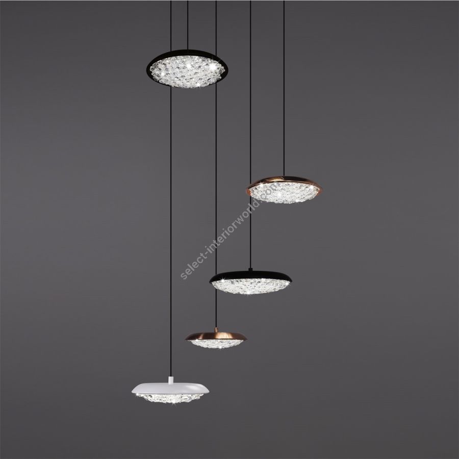 The name Origo means “origin” and alludes to the infinite light at the birth of the universe, bringing a sense of cosmic depth to its perfectly circular form. A fusion of luxury and minimalist aesthetics, the Origo crystal chandelier embodies the essence of modern elegance. This handmade crystal chandelier is crafted from premium-quality crystal and offered in a variety of finishes. It can be flexibly integrated into complex, high-end interiors, with bespoke options available for tailored design concepts. Its adaptable structure allows for both horizontal and vertical compositions. Horizontal arrangements work beautifully above kitchen counters, dining tables, or workspaces, while vertical installations are ideal for staircases or atriums with high ceilings. Whether displayed as a single statement crystal lamp or arranged in groupings, the Origo crystal chandelier adds a sophisticated visual presence to a wide range of architectural settings. Recommended to be installed in clusters of varied sizes.