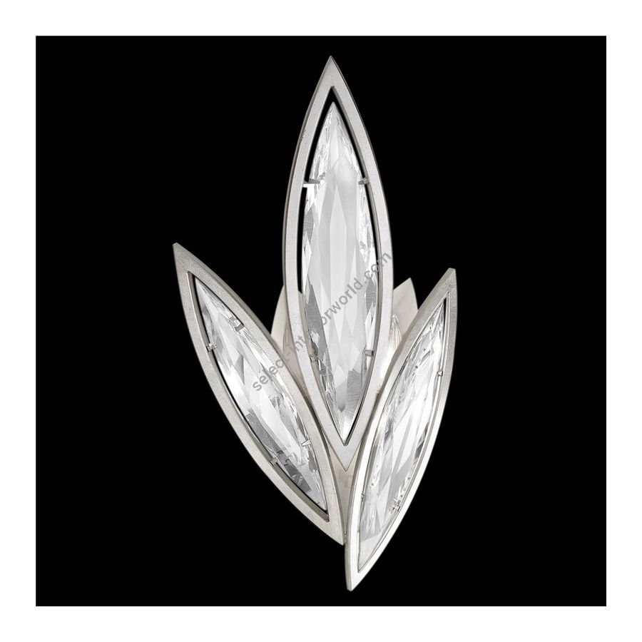 Elegant and graceful right side facing sconce in platinized silver leaf finish with hand cut faceted crystals. Left side facing sconce #854250-12