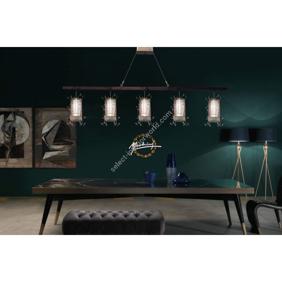 Mechini / Chandeliers / Clear Bohemian Crystal and Lamp Shades L-Grid/5 Line