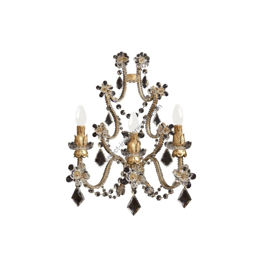 3 lights wall lamp in wrought iron with clear Bohemian crystal and clear pearl banding