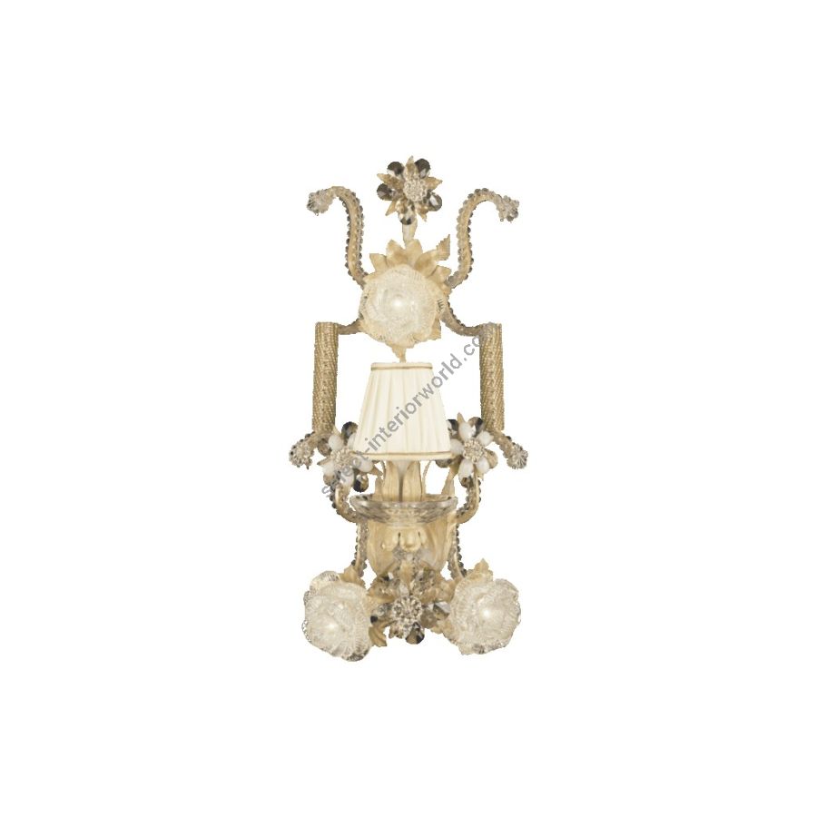 1 lights + 3 led wall lamp in wrought iron with clear Bohemian crystal, Murano glass, Bohemian strip and silk lamp shade