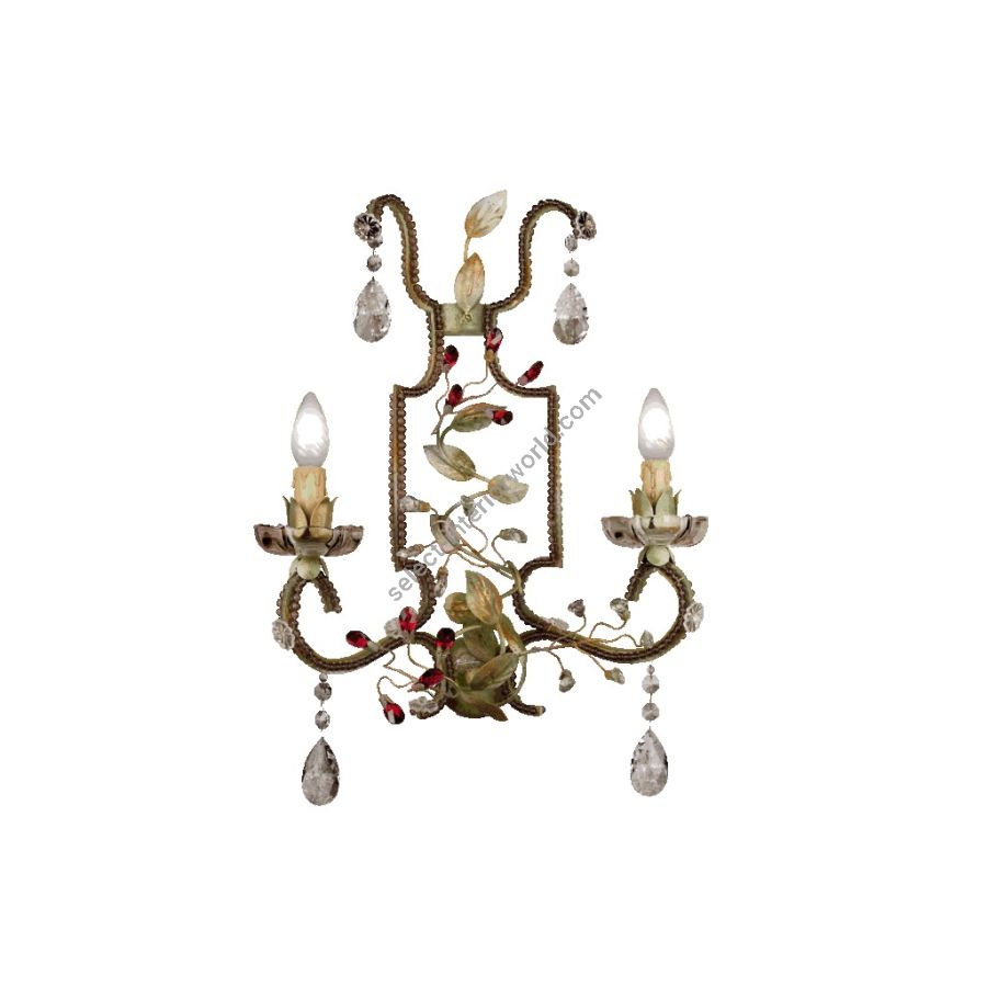 2 lights wall lamp in wrought iron with clear and colored Bohemian crystal