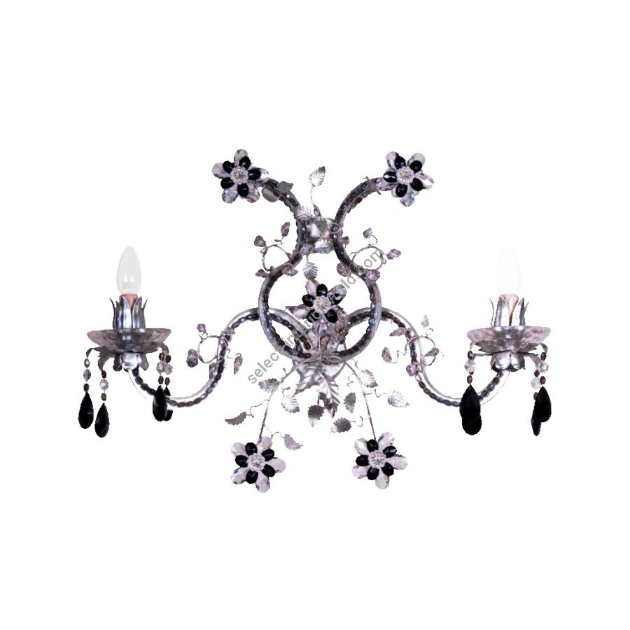 2 lights wall lamp in wrought iron with clear and colored Bohemian crystal and Murano glass