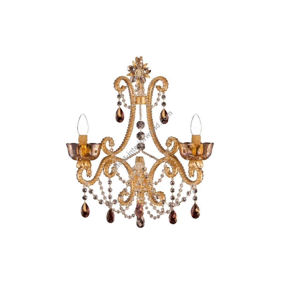 2 lights wall lamp in wrought iron with clear and colored Bohemian crystal and clear pearl banding