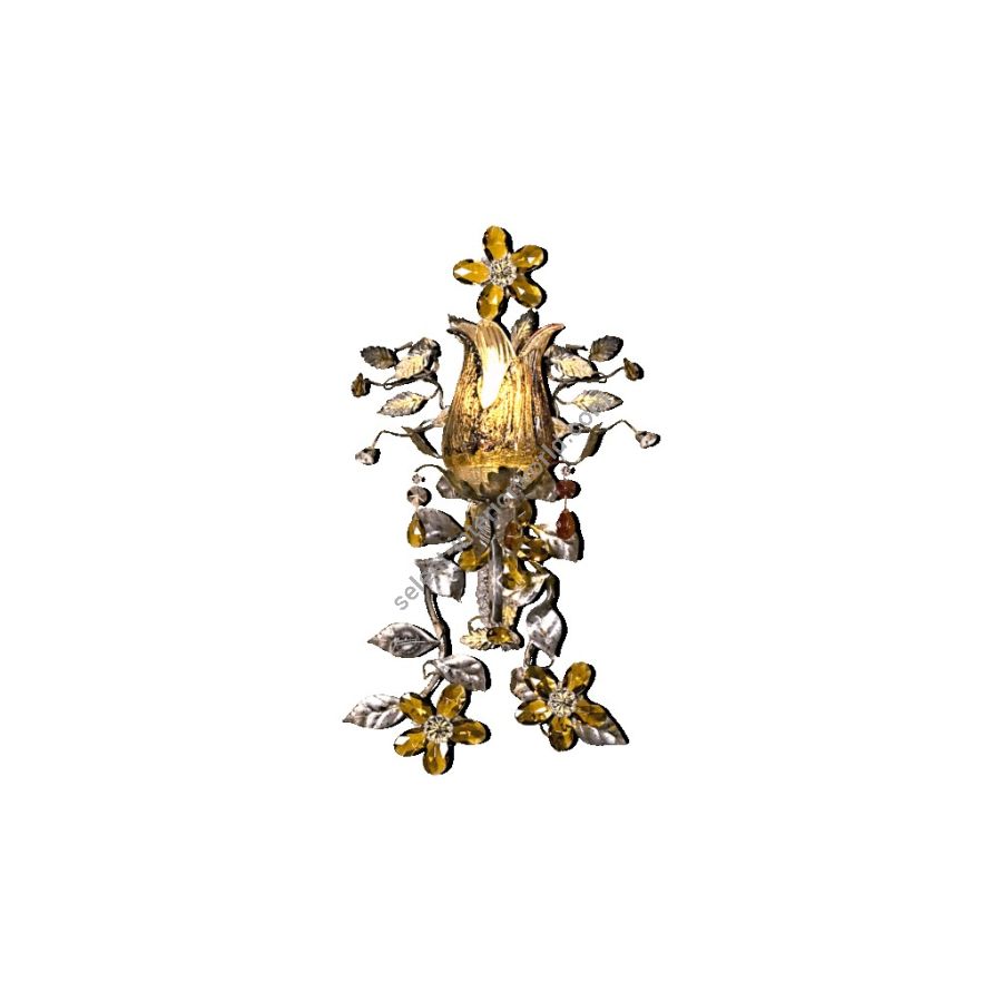 1 lights wall lamp in wrought iron with clear and coloured Bohemian crystal, Murano glass and coloured pearl banding