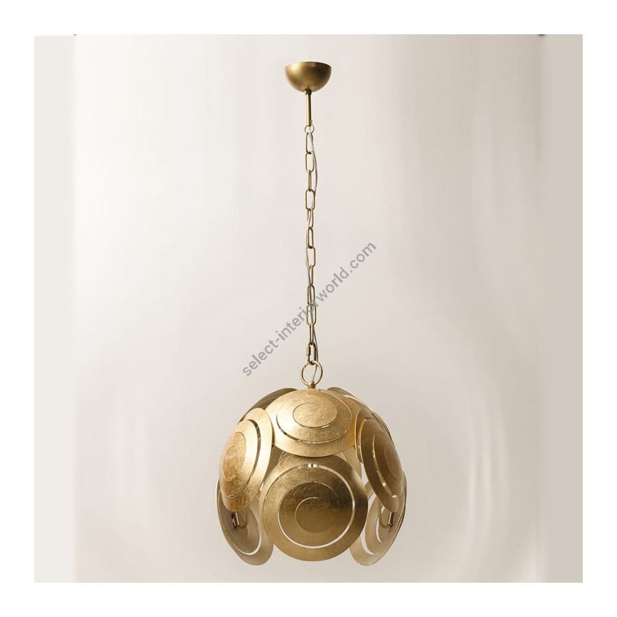 A strong ethnic look, wisely revisited in modern key with embossed work metal and finished in gold leaf. Contemporary light with a traditional taste.