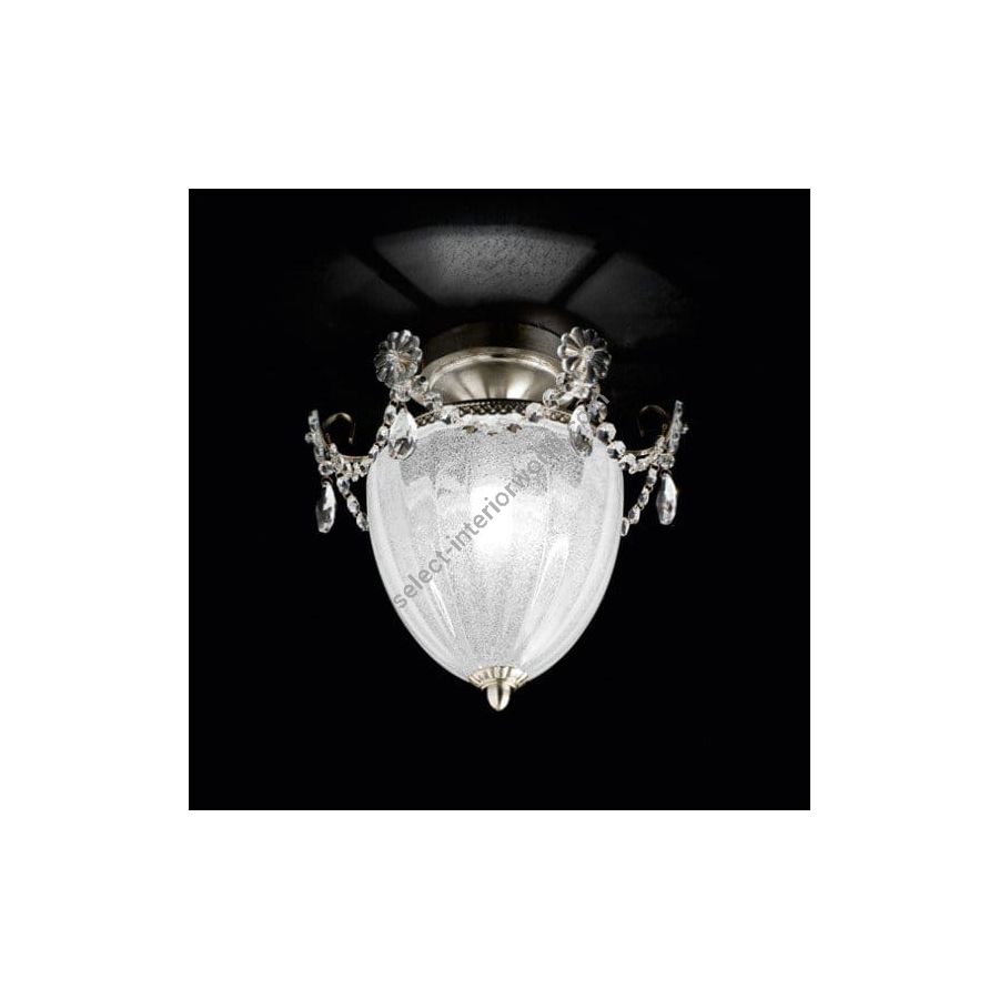 This range is realized in metal enriched with a silver and gold leaf finish and with blowned murano glass. Pleasantly enriched with crystals that gives light and brightness.