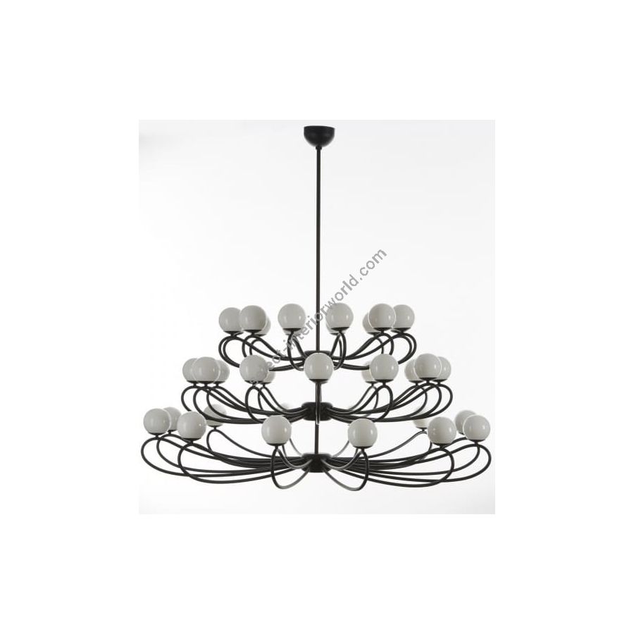 Fluid shapes of metal pipes of this tailor-made chandelier want to remind the papillon, the accessory symbol of elegance and icon of classical style. These chandeliers of rare quality have been created thanks to an expert craftmanship and special care for details.