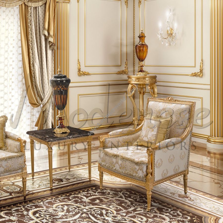With singular lines and special details, this royal armchair’s sophisticated character is dignified by its classical inspiration. The possibility of choosing all the finishes brings versatility and originality to the piece.