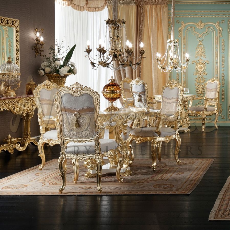 Extreme luxury ivory round table with gold leaf details.The best furnishing accessory to decorate your living room, whether you live in a palace, a castle or a penthouse. Modenese Furniture 100% Made in Italy.