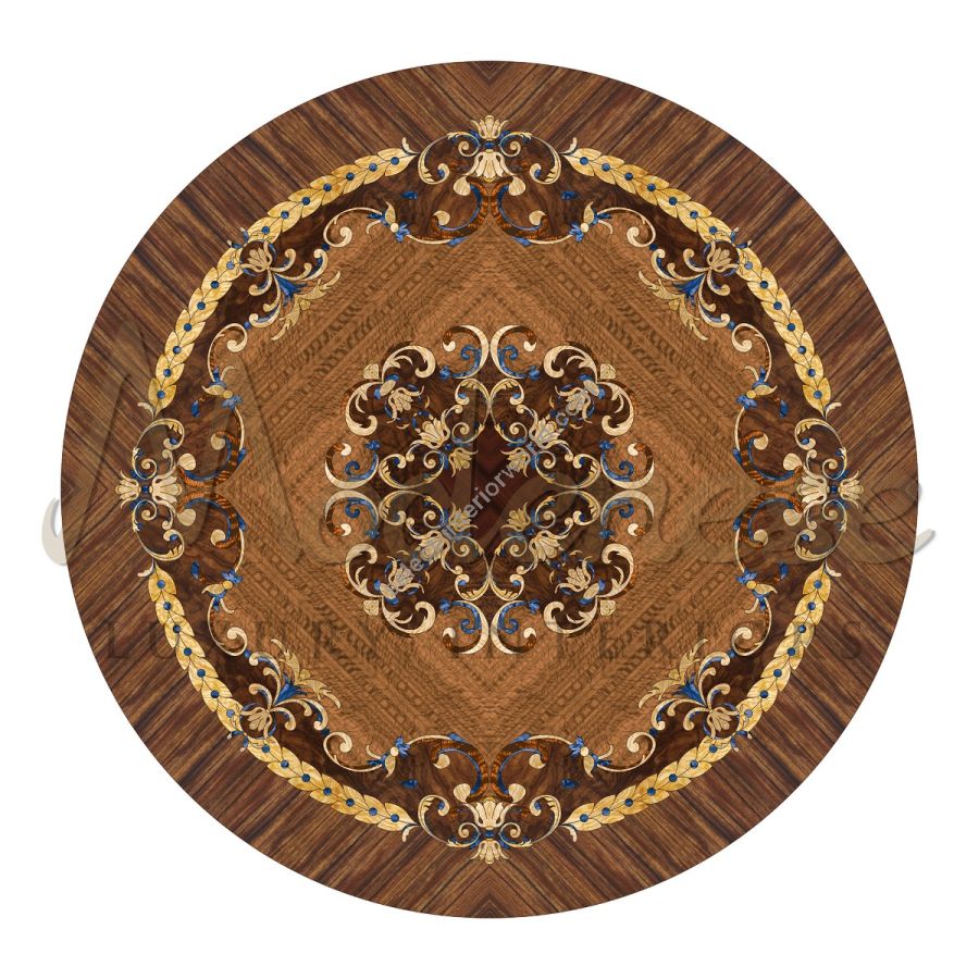 Modenese Furniture is specialized in providing the highest quality standards to its VIP clients. This round side table features a hand-inlaid top surface that expresses the finesse of the brand's skilled artisans of the wood inlay work. Such a piece is most suitable in classic living rooms with baroque furniture and design.
