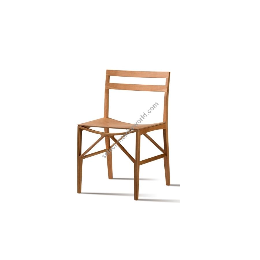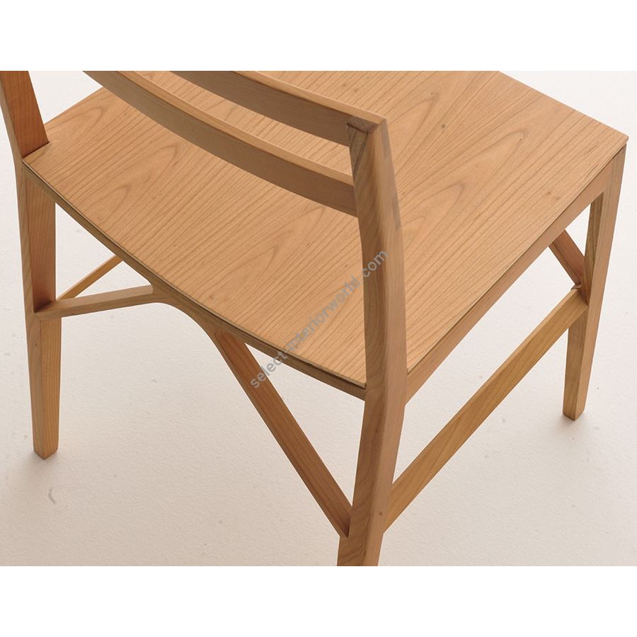 Lightness and geometry characterize the shape of the Celeste, an elegant chair entirely made of wood. The particular structure of the bridge legs allows an even distribution of the weight with a thin and lightweight frame.