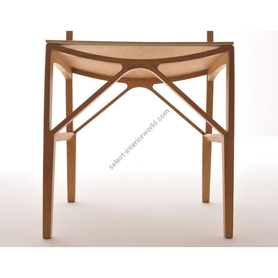 Chair made of solid ash wood and seat in beech plywood veneered with ash. The particular bridge structure allows to equally distribute the weight and to reduce weight and thickness.