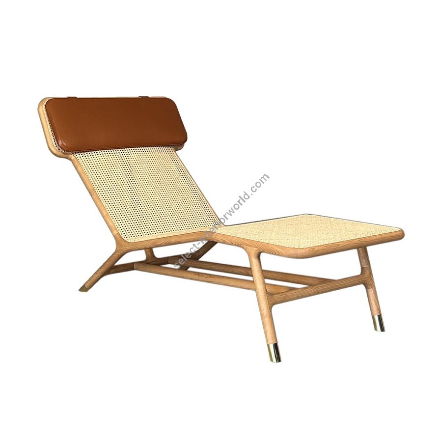 Elegant, original and chic, Joyce in the chaise lounge version comes with all the refined details of the collection. The light frame of turned ash wood accommodates the wide Vienna straw seat. The applied cushion completes the furniture to give the highest comfort. Joyce is completed with brass feet, capable of adding a touch of light to natural wood. A unique and essential furniture design, perfect for both home and contract spaces.