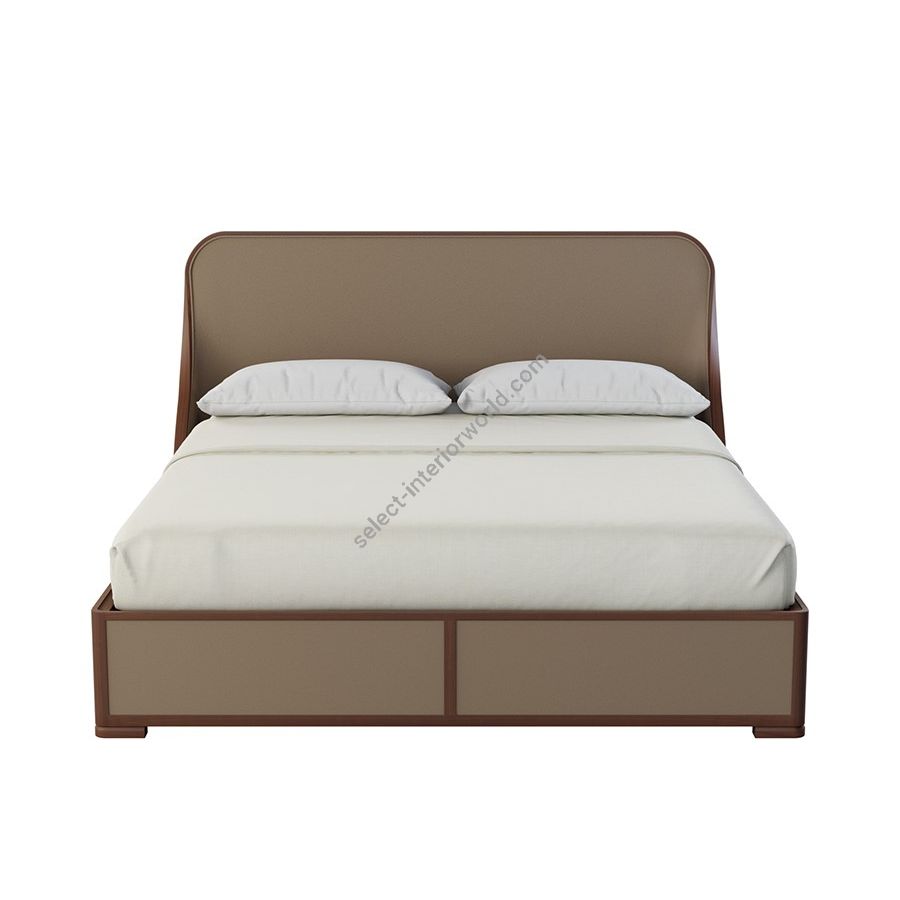 The Orlando is a soft and cozy double bed with sinuous forms that conceals a practical and roomy storage compartment. The bed has a frame made of fine cherry wood and a large headboard padded on both sides, with a particular wooden propeller shaped profile.
