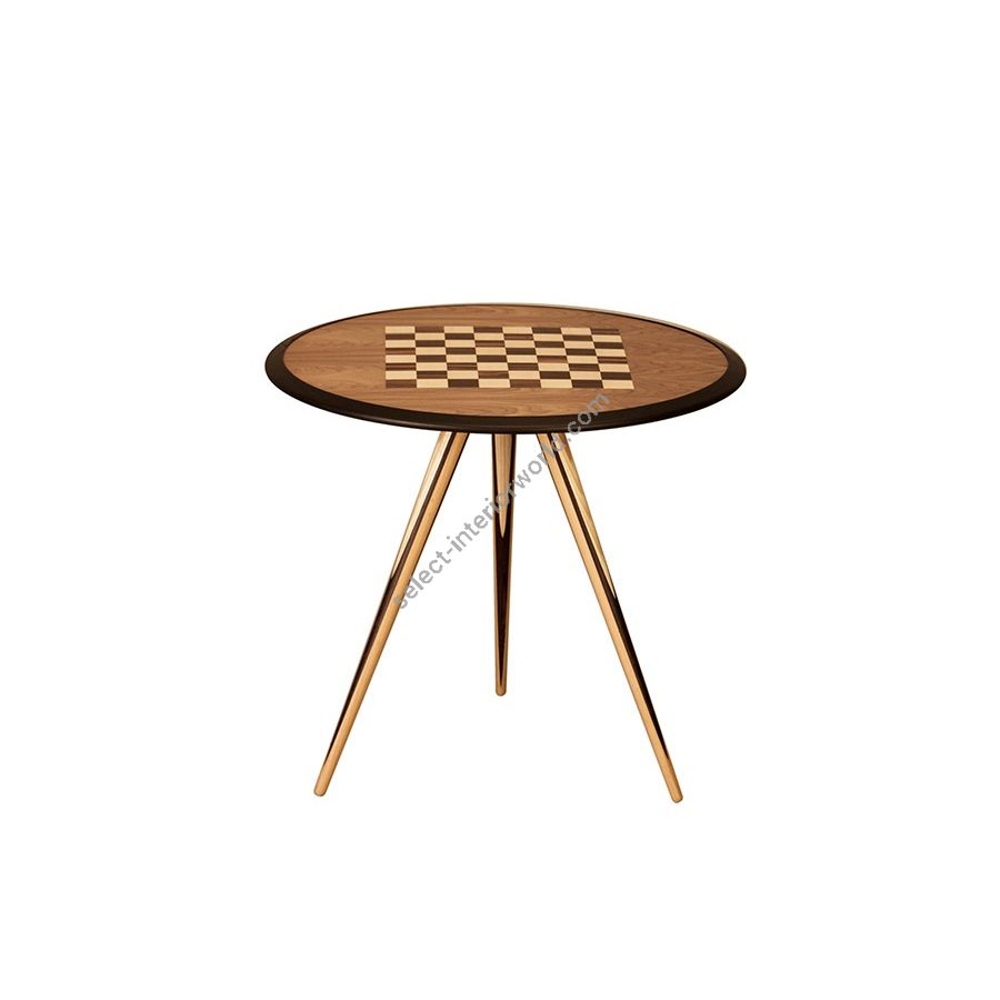Game table made of ash wood with veneered chessboard on the top, and turned legs.